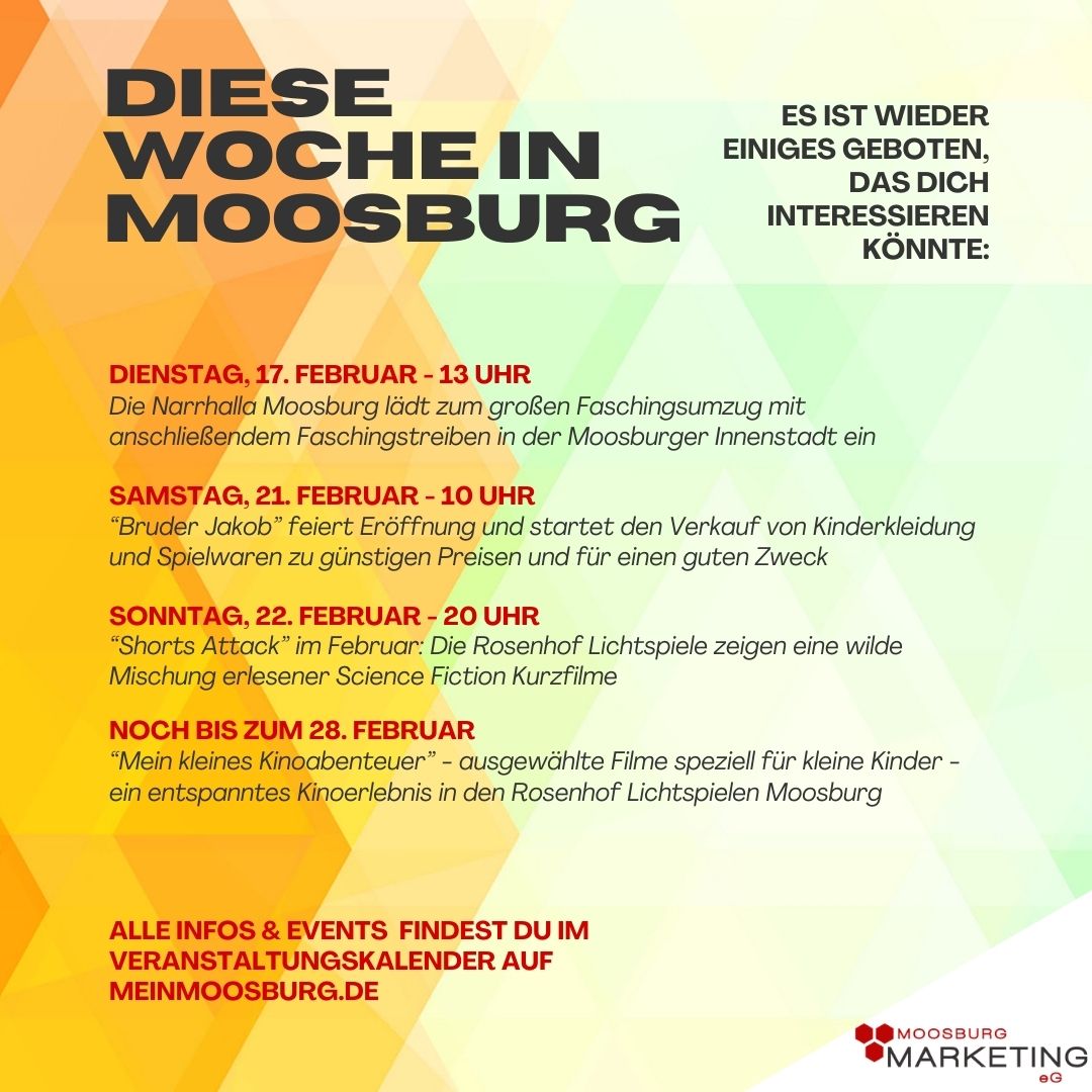 Alle Termine zum Faschingsendspurt und noch vieles mehr findet ihr im Veranstaltungskalender auf meinmoosburg.de.