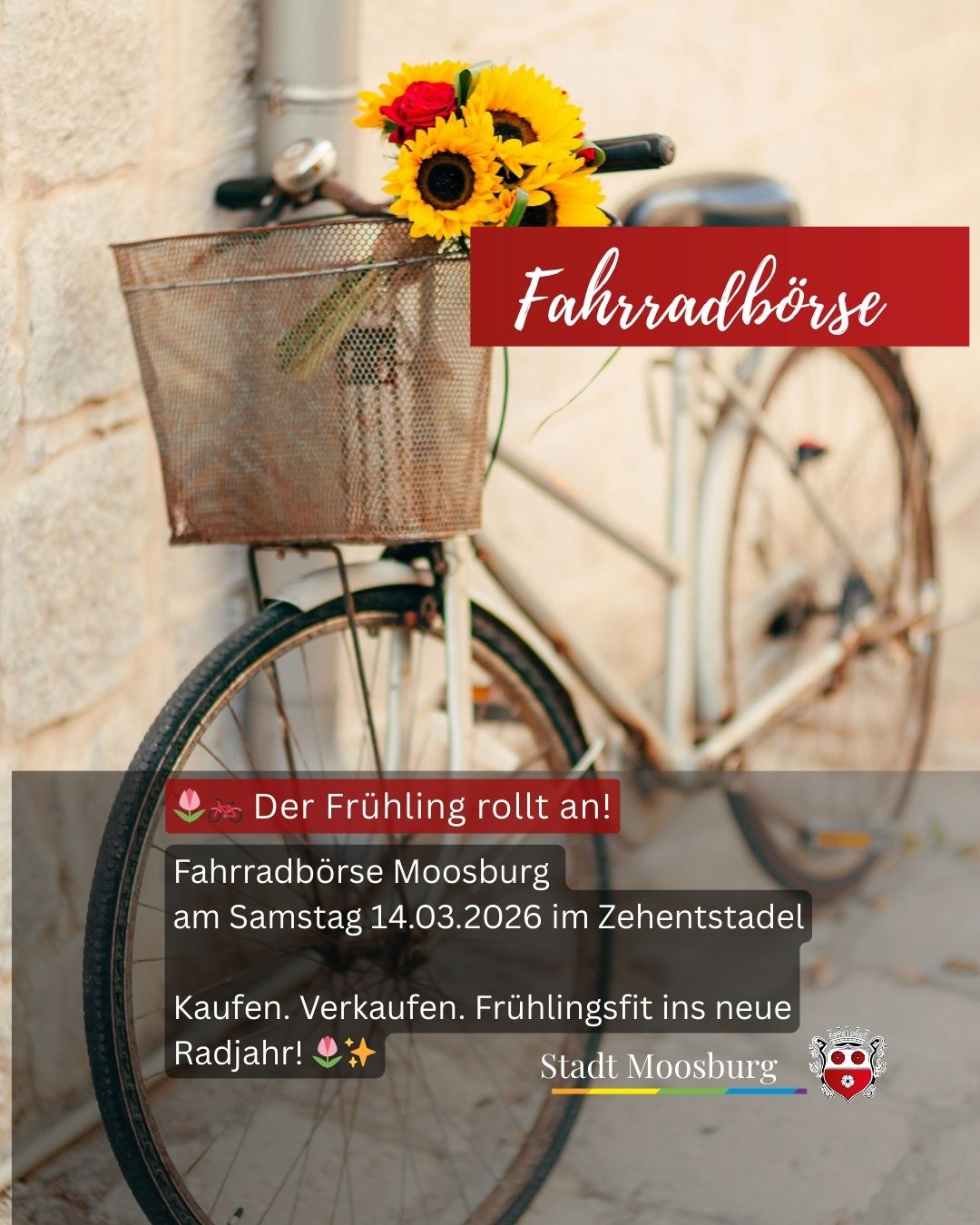 Am Samstag, 14. März 2026, findet im Zehentstadel die 8. Moosburger Fahrradbörse statt.
