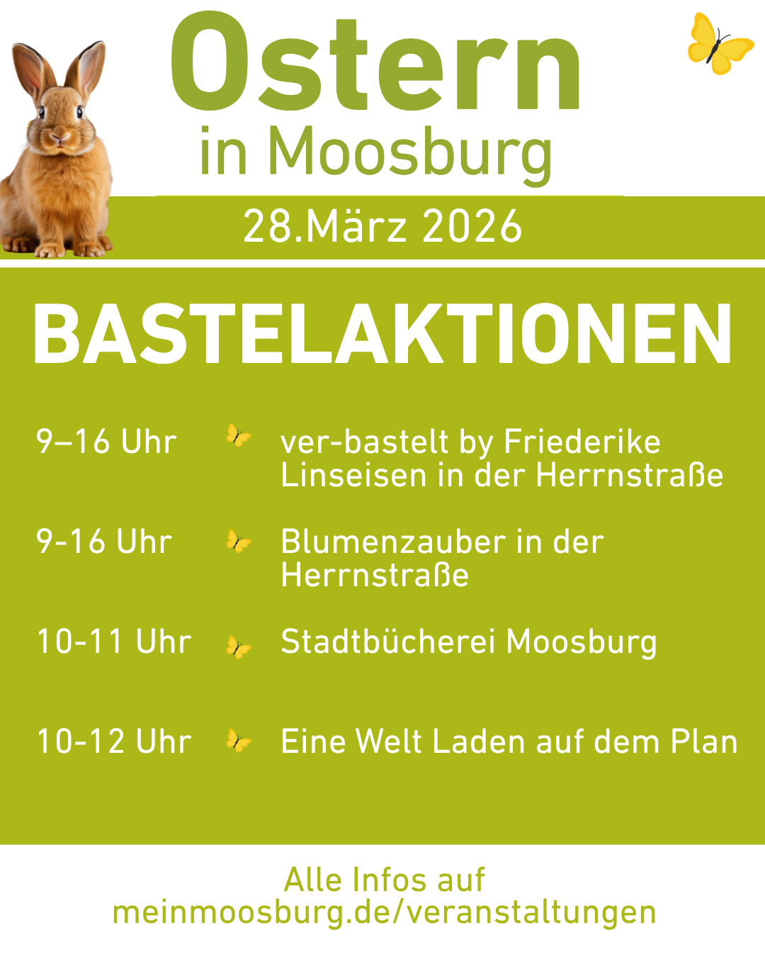 Am 28. März 2026 wird die Moosburger Innenstadt wieder kunterbunt – denn es warten viele liebevoll gestaltete Bastelaktionen speziell für Kinder!