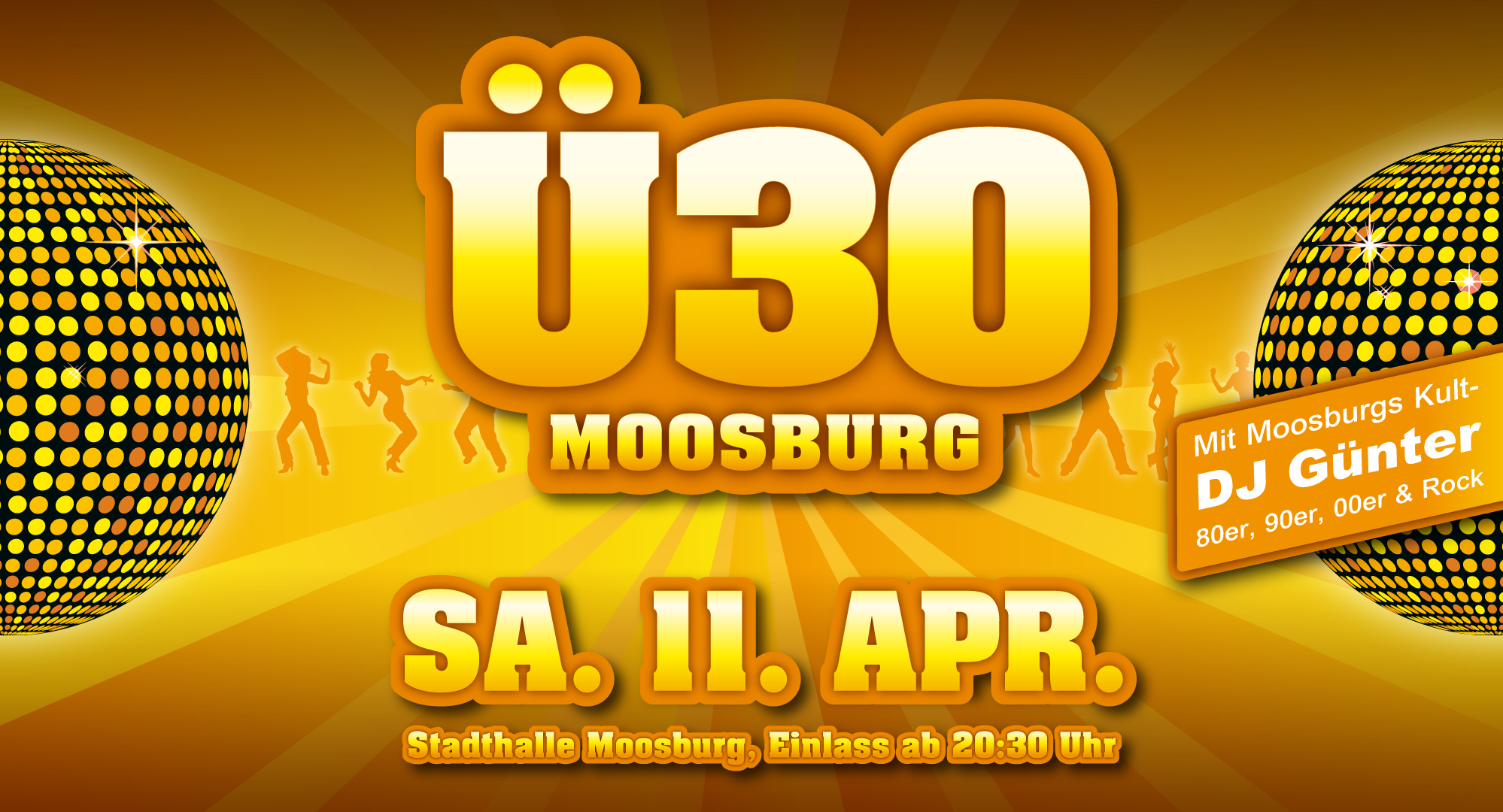 Am Samstag, 11. April 2026 öffnen sich ab 20:30 Uhr die Türen der Moosburger Stadthalle zu einer fantastischen Feier, die Jung und Alt gleichermaßen begeistern wird. Beginn ist um 21:30 Uhr. Kult DJ Günter, bestens bekannt aus dem Moosburger Madhouse, sorgt mit Musik aus den 80er, 90er, 00er und Rock für den richtigen Partysound.